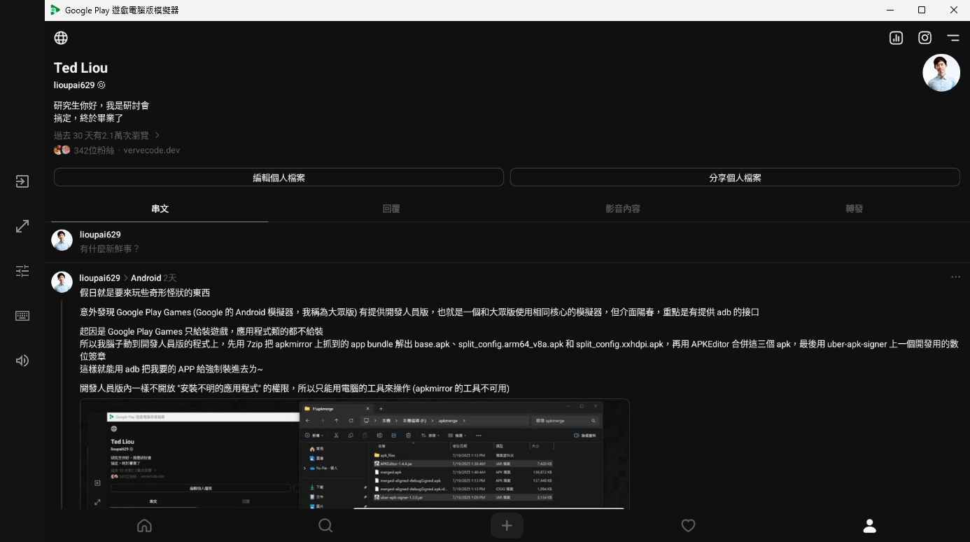 市面上的 Android 模擬器經常伴隨著許多廣告和預裝 APP,而使用者期望的是一個乾淨的系統環境。Google 先前推出官方支援的 Google Play 遊戲模擬器,但不開放非遊戲的 APP 安裝。本文以 Threads 為例,說明應如何把 Google Play Games 的開發人員版本變成一個官方支援、無廣告且可自由安裝 APP 的 Android 模擬器。